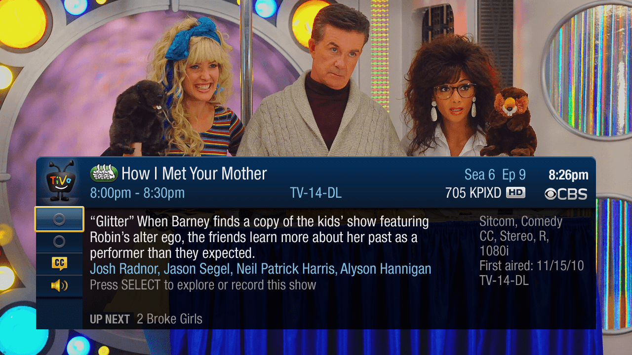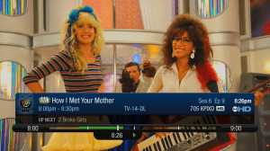 When you channel surf in live TV, you’ll see the standard size Info Banner, which will show you what’s on now, and what’s up next.