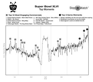 Who came out on top as the most watched moment, commercial or play? For the second year in a row it was a play. Tom Brady’s Hail Mary throw into the end zone with just seconds left on the clock. Last year’s most watched moment was when Pittsburgh Steelers’ quarterback Ben Roethlisberger threw an incomplete pass to Mike Wallace in the final minute of the fourth quarter, giving Green Bay the Championship title.
